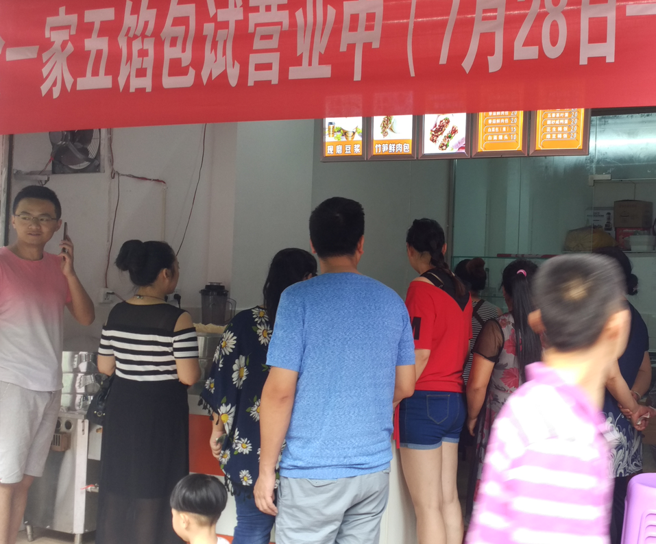 从烧烤到包子,跨度真的挺大。在蜀食一家技术导师的耐心指导下,他们顺利学会了包子的技巧及店内经营的一系列流程。回家就进行装修,大刀阔斧的把原有烧烤店改装成了包子店。从试营业开始,他们的五馅包就备受关注,开业当天生意非常火爆,包子刚出笼就被一抢而空,好几次都卖断货。