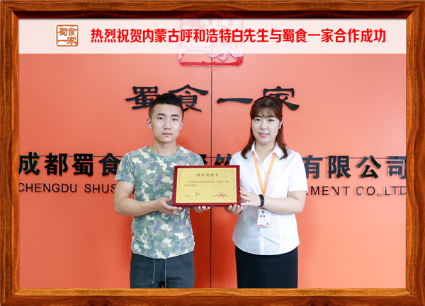 热烈祝贺内蒙古呼和浩特白先生与蜀食一家合作成功