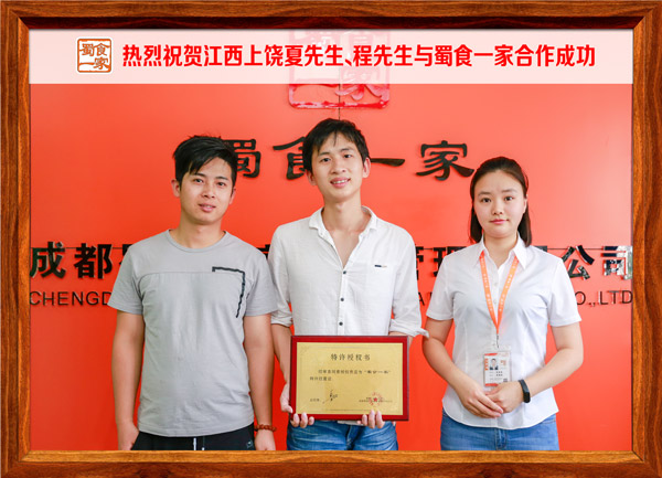 热烈祝贺江西上饶夏先生、程先生与蜀食一家合作成功
