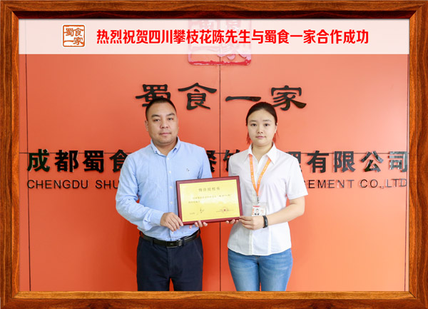 热烈祝贺四川攀枝花陈先生与蜀食一家合作成功