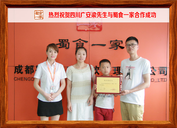 热烈祝贺四川广安梁先生与蜀食一家合作成功